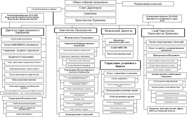В ПАО «АТБ» вертикальная система где во главе каждого стоит начальник отчитывающийся перед директором, управляющий осуществляет контроль и всей текущей Общества, отчитываясь за деятельность перед Общества, который в очередь, принимает решения в стратегии р Общества.