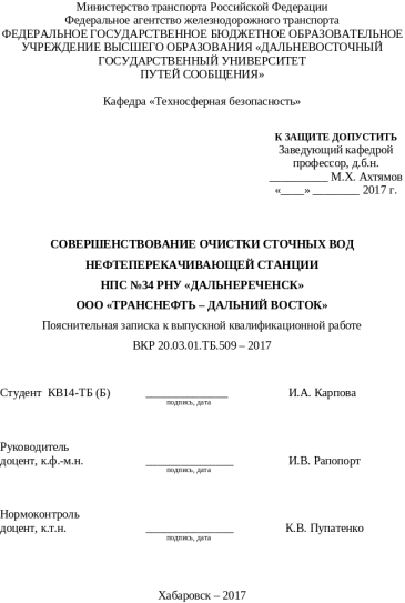 Целью выпускной квалификационной работы является совершенствование очистки производственно - дождевых сточных вод нефтеперекачивающей станции НПС №34. Для выполнения поставленной цели были поставлены следующие задачи: