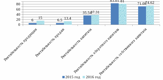 В 2015 г. составил 21,34 и в 2016 г. 9,24. Этот показатель снизился на 12,09, что может означать бездействие части собственных средств. Показатель оборачиваемости собственного капитала указывает на необходимость вложения собственных средств в другой более подходящий источник доходов.
