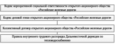 Важным локальным документам являются Правила внутреннего трудового распорядка (далее – Правила) Дальневосточной дирекции по тепловодоснабжению (далее – Дирекции) разработаны в соответствии с Трудовым кодексом Российской Федерации, федеральными законами, Положением об особенностях режима рабочего времени и времени отдыха, условий труда отдельных категорий работников железнодорожного транспорта, непосредственно связанных с движением поездов, иными нормативными актами с целью организации труда, укрепления трудовой дисциплины, оптимизации использования рабочего времени, а также повышения производительности труда.