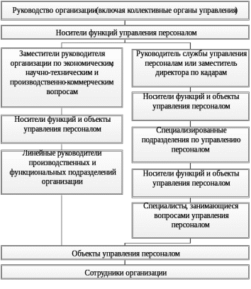 Рисунок 12 - Объекты и носители функций управления персоналом в иерархической системе управления организацией