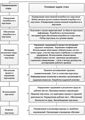 Кратко рассматривая технологические аспекты управления персоналом можно обобщить следующие этапы;