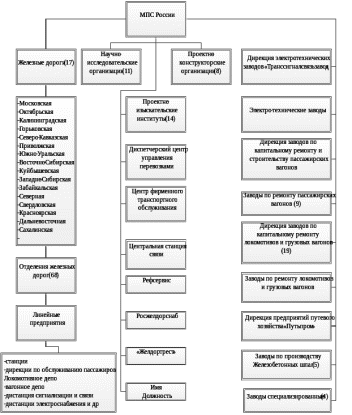 Основу системы железнодорожного транспорта составляла единая транспортная сеть, разделенная по географическому принципу на 17 железных дорог и 68 отделений железных дорог. Несмотря на то что железные дороги и их отделения являлись отдельными юридическими лицами, управление ими осуществлялось центральным аппаратом МПС России.