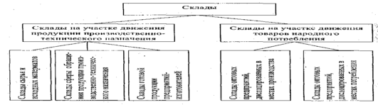 В свою очередь, первая группа складов подразделяется на склады готовой продукции предприятий-изготовителей, склады сырья и исходных материалов предприятий- потребителей продукции производственно-технического назначения и склады сферы обращения продукции производственно-технического назначения.