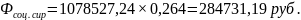 - отчисления на социальные нужды 26,4% от суммы оплаты труда по данной статье: