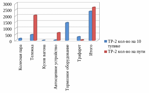 Рисунок 2.3 - Поступление неисправных вагонов за 2015 год на ТР-2