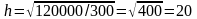 Минимальная высота установки прожекторов над освещаемой поверхностью h, м: