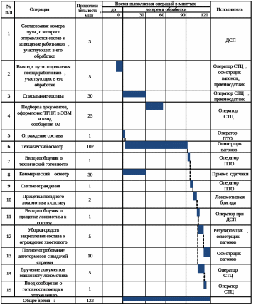 Рисунок 3.2. Технологический график обработки передаточного поезда по отправлению