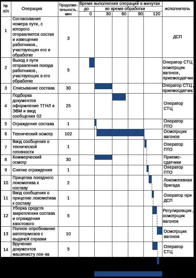 Рисунок 6.1 Технологический график обработки четного передаточного поезда