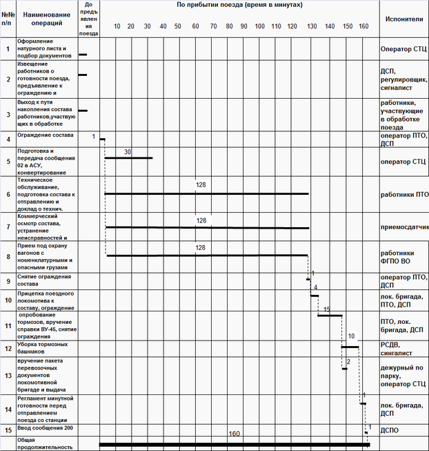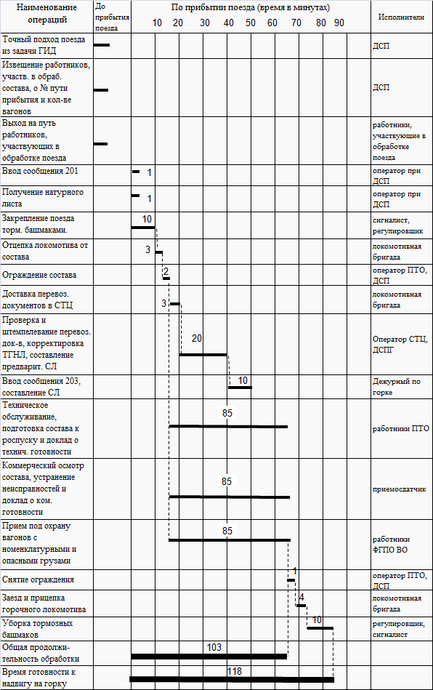 Рисунок 5.3 Технологический график обработки грузового поезда, прибывающего в расформирование на станцию Уссурийск