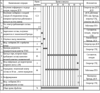Технологический график обработки грузового поезда, прибывающего в расформирование, представлен на рисунке 3.2.