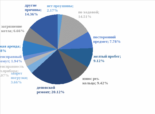Из диаграммы видно, что основной причиной забраковки является деповской ремонт.