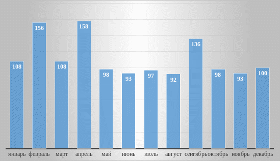Из гистограммы видно, что наибольшее количество цистерн было забраковано в феврале, апреле и сентябре месяце.