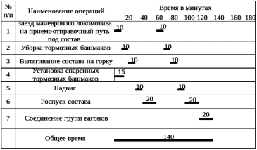 Рис. 1.1. Технологический график обработки поезда поступающего в расформирование