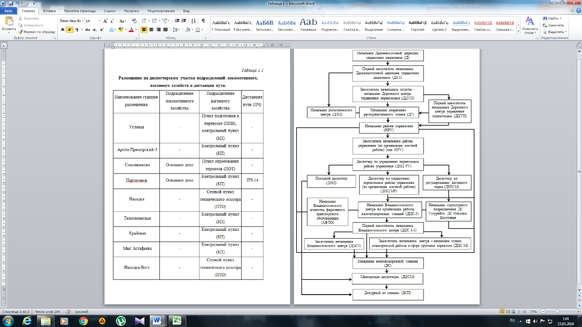 вагонного хозяйств, а также дистанции пути представлены в таблице 1.1.