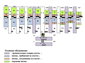 При объединении участкового вагонопотока со сборными поездами составляется диаграмма вагонопотока на участковых и промежуточных станциях (рисунок 3.3).