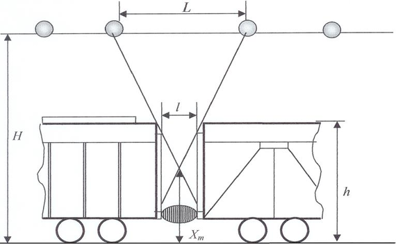 Наличие на путях подвижного состава при соответствующем размещении осветительных приборов создает в междупутьях глубокие и резкие тени. При этом практически исключена возможность использования отражённого светового потока, так как коэффициенты отражения окружающих поверхностей весьма малы и составляют не более 0,075 - 0,15 ‰. С точки зрения обеспечения нормального освещения имеют значение только размеры теней, которые принято оценивать коэффициентом затенения междупутья, т. е. долей поверхности междупутья, находящейся под тенями от подвижного состава. Этот коэффициент снижается с увеличением высоты установки осветительных, приборов и уменьшением числа путей между ними, наименьшее значение приобретает при размещении осветительных приборов над осью каждого междупутья. Качество освещения на путях надвига составов на горках вытяжках зависит от размеров тени, образующейся в междувагонном пространстве, которую можно оценивать коэффициентом затенения междувагонного пространства, минимум приемлемое значение которого обеспечивается при расположении вершины указанной тени ниже автосцепки. Высота подвески осветит, приборов и расстояние между ними (шаг) жёстко зависят от принятого минимум значения коэффициента. [2] Рис 1.1