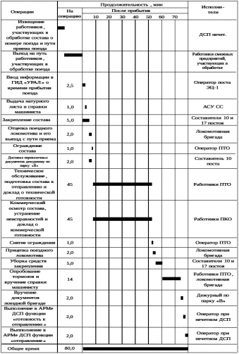 На основе данных расчетов, составляется технологические графики обработки транзитных поездов и поездов своего формирования, которые представлены на рисунках 3.1. и 3.2.