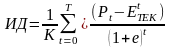 где Рt – результаты (доходы), достигаемые на t-м шаге расчета; Еt – затраты (капитальные вложения и текущие затраты за минусом амортизации, так как они являются одним из источников финансирования инвестиционного проекта) на t-м шаге расчета; Т – продолжительность расчетного периода; е – норма дисконта; Эt – текущий эффект, достигаемый на t-м шаге расчета.
