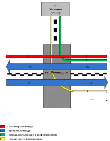 Диаграмма среднесуточных поездопотоков станции Лучегорск