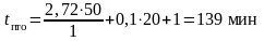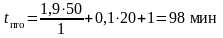 τm=2,7 мин; m=50 ваг; k=1; α =0,1; tрем=20 мин; a = 1 мин.