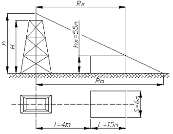 Принимаем высоту стержневого молниеотвода h = 25 м. Тогда на высоте hх = 5,5 м радиус зоны защиты типа А определяем по формуле (8.2):