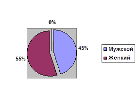 По данным рисунка 9 видно небольшое, но преимущество персонала женского пола (55%), так как это напрямую связано со спецификой данного предприятия. В гостинице «ЕВРОПА» мужчины (45%) занимают руководящие должности, и там, где работа предусматривает тяжелый физический труд или специфика самой работы требует мужского присутствия.