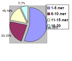 Рисунок 7 - Структура персонала гостиницы «ЕВРОПА» (по стажу работы)