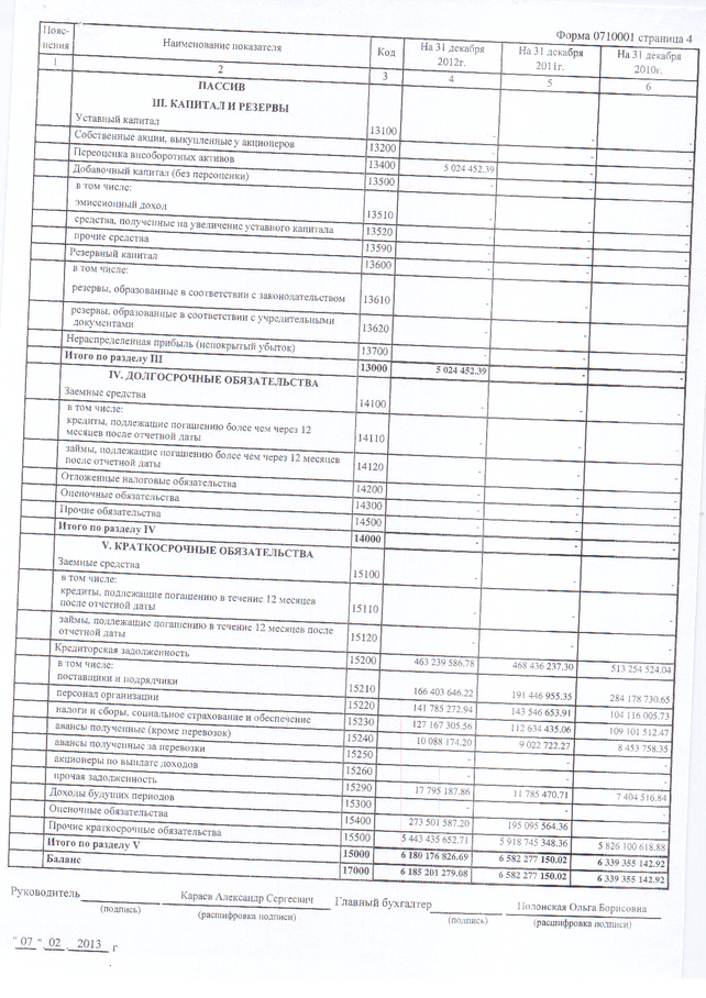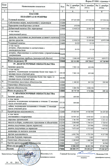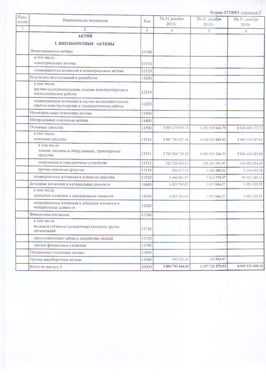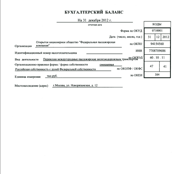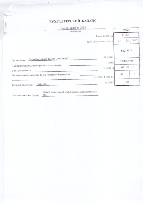 Бухгалтерский баланс Дальневосточного филиала АО «ФПК»