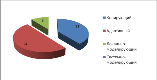 | 3. | локально-моделирующий | 20 | 21,4 | 3,6 | 10,7 |