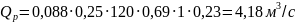 по формуле (4.1) рассчитываем расход воды стока (принимая