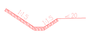 Рисунок 4.5 – Поперечный профиль запроектированной канавы с укреплением дна и откосов щебнем толщиной 0,2 м.