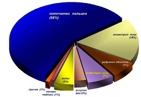 Рис.2.7. Сегментация биометрического рынка по применяемым идентификаторам.