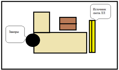 Рисунок 2.2 Точки замеров освещенности на посту медсестры