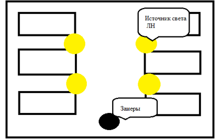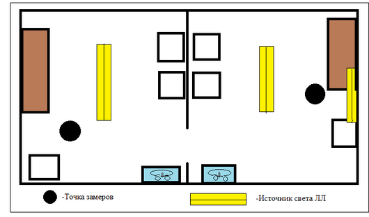 Рисунок 2.1 Точки замеров освещенности в палатах №1-4