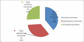 По полученным результатам видно, что у 39 опрошенных наблюдается плохое состояние.