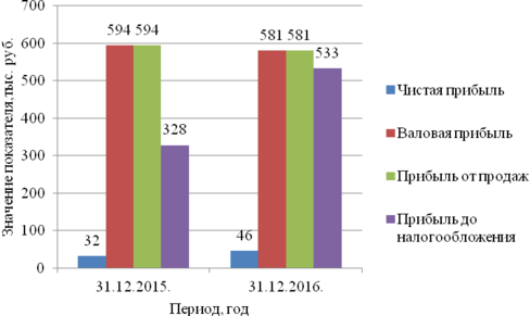 Прибыль до налогообложения увеличилась в конце 2016 года на 62,5 процента. Это изменение связано с увеличением себестоимости продаж. Показатель чистой прибыли отображает конечный результат деятельности предприятия и показывает, на сколько выгодно осуществление данного рода деятельности. Данный показатель в 2016 году увеличился на 43,75 процента, а это значит, что предприятие в определенный период 2015 - 2016 гг. хорошо проводило свою деятельность.