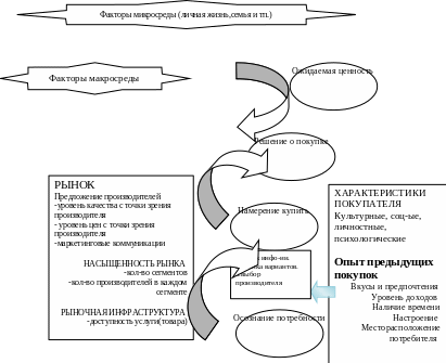 Как известно, на весь этот процесс, а также на рынок данной услуги (товара) влияют макрофакторы. Они непосредственно имеют влияние на микросреду потребителя, которая имеет решающее значение при формировании и развитии характеристик потребителя. Ну и, конечно, нельзя снимать со счетов такие ситуационные факторы как настроение и стечения обстоятельств. Развитость рынка является также немаловажным влияющим на ожидания. Не будет новостью, что чем выше уровень микросреды потребителя, его характеристик, уровень платежеспособности, чем развитее рынок, тем выше ожидания потребителя (его стандарты).