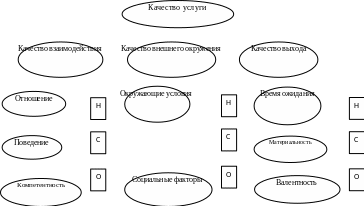 Таким образом, исследователи определили, что воспринимаемое качество услуг имеет многоуровневую (иерархическую) и многомерную структуру, которая состоит 3 составляющих, каждая из них имеет свои 3 подсоставляющие, и те, в свою очередь, воспринимаются потребителем по 3 описателям. Причем такая структура характерна для всех отраслей сферы потребительских услуг, только в зависимости от отрасли варьируется важность (значимость) тех или иных составляющих.
