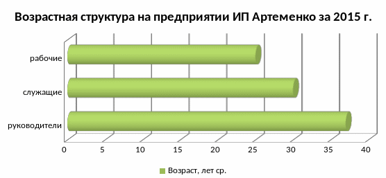 Таблица 11 - Возрастной состав работников ИП за 2014 - 2015 гг.