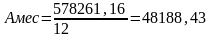 где – Амес - ежемесячная арендная плата (руб.).