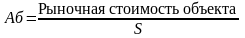 Базовая ставка (Аб) для расчета арендной платы за один квадратный метр основной площади недвижимого имущества рассчитывается как частное от деления рыночной стоимости объекта, по которому проведена оценка, на его основную площадь, установленную на основании инвентаризационных (правоустанавливающих) документов (формула (6)).