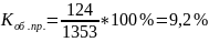 Коэффициент оборота по приему, который определяется по формуле (2)