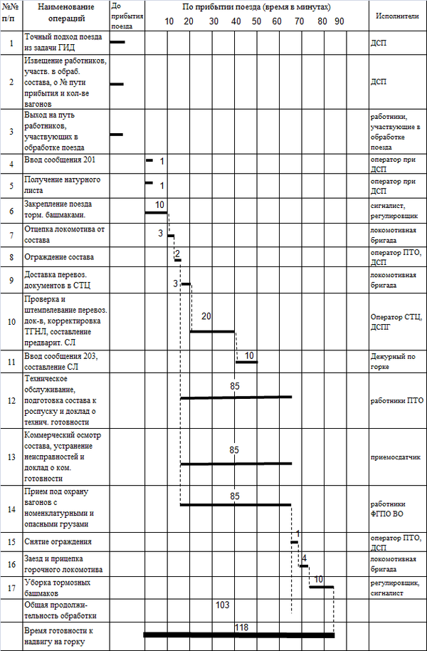 Технологический график обработки поезда, поступившего в переработку по станции Уссурийск и в парк Уссурийск-II представлены на рисунке 3.4.