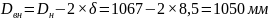 Dн – наружный диаметр трубопровода, Dн =1067 мм;