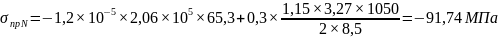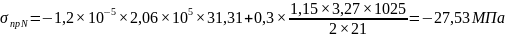 При толщине стенки нефтепровода 21 мм продольные осевые сжимающие напряжения по формуле 6.7 будут равны: