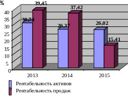 | Рентабельность активов, % | 37,42 | 15,41 | –22,01 |