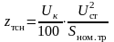 – паспортное напряжение КЗ, %.