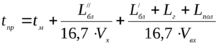 – средняя скорость хода по первому блок-участку, горловине и пути до остановки, км/час; 16,7 – коэффициент перевода скорости из км/ч в м/мин.