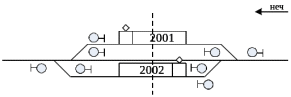 Схема 1. Нечетные поезда следуют по ограничивающему перегону без остановки, четные с остановкой.